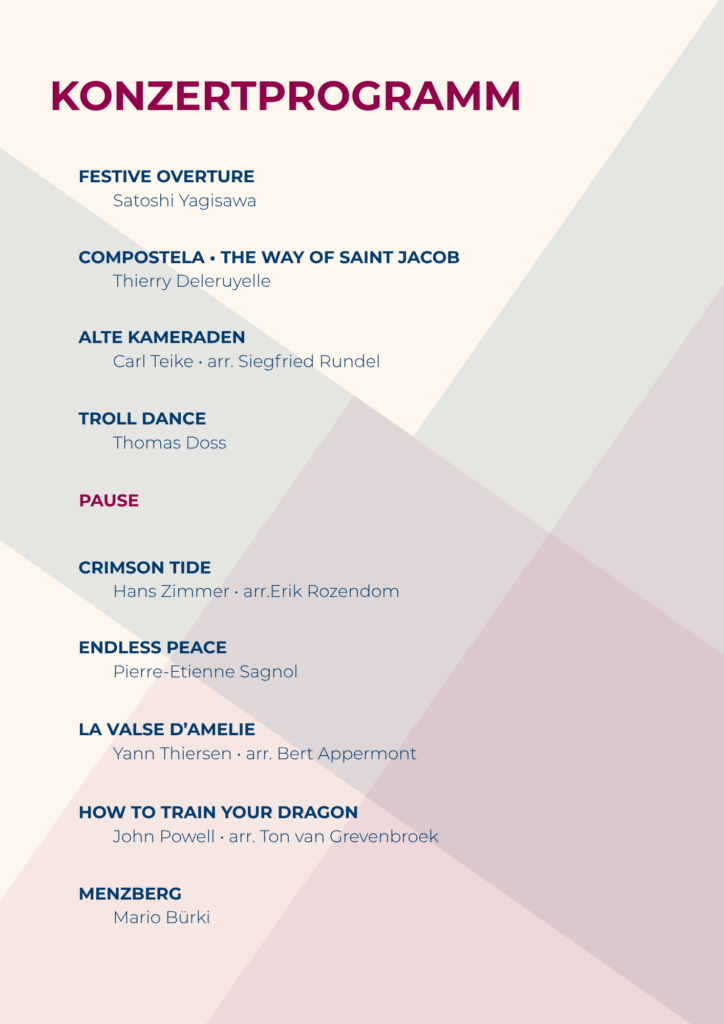 Zusammen mit unserem geschätzten Dirigenten Robert Zimmermann haben wir ein unterhaltsames und abwechslungsreiches Programm eingeübt.